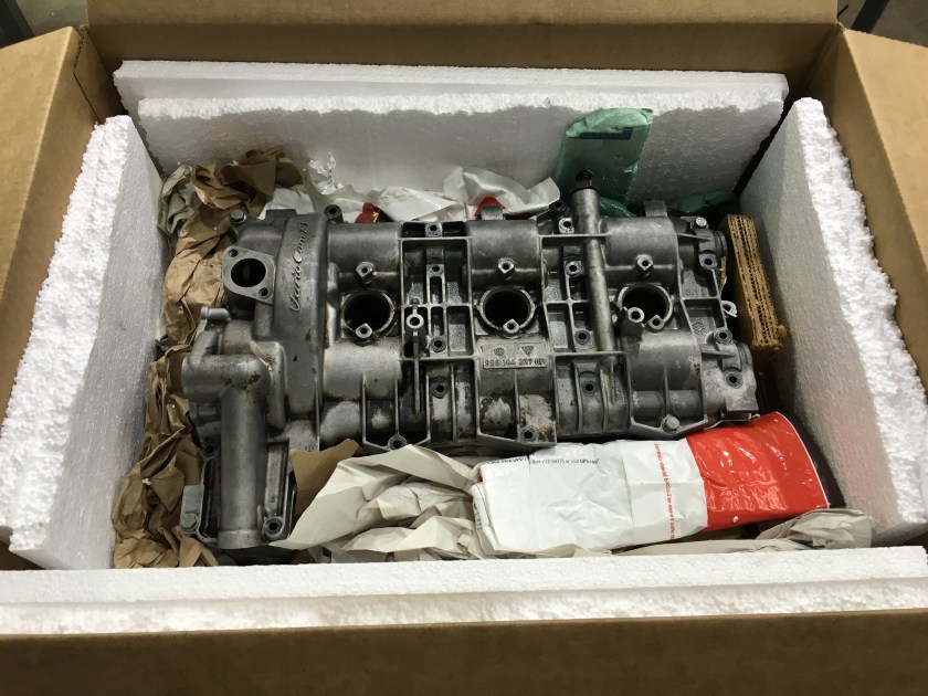 The heads need to be drained of oil, but no further cleaning is required. We’ll take it from there. Into each M96/97 head (and all OHC heads with cam bearing caps) bolt the cam bearing caps in position (no cams), place the lifter housing in position with a couple of bolts, bolt the valve cover in place (4 bolts are enough for that) and slip each head into a heavy-duty plastic garbage bag. We do not need any other parts, including the cams & lifters, unless otherwise discussed.