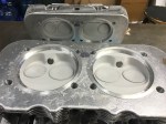After a thorough visual inspection we mounted them in our CNC machine for some reverse engineering to see how they compared to our programmed specs for factory heads. Overall I was pleased with those results as bore and chamber centers and heights were spot on. We did find that the intake ports were rough as corn cobs and out of position, especially the #2 ports, relative to the manifold stud pattern which was properly positioned relative to the registers (thankfully). This means port matching, at a minimum, will be critical for good performance and even cylinder filling from cylinder to cylinder.