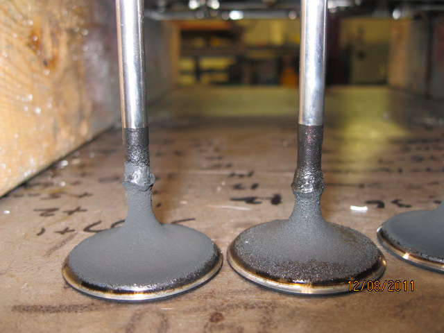 All of the intake valves had this heavy build up with the peculiar accumulation near the base of the stem.